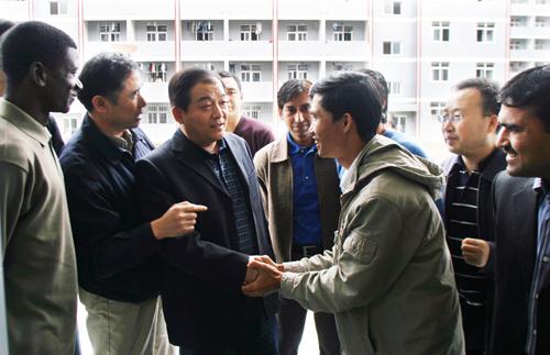 在职工楼,张光强书记深入到职工的宿舍、厨房、洗衣房和活动室,详细询问并了解了职工们的学习和生活情况,勉励他们认真学习,并祝愿他们在best365官方网站度过美好、愉快的学习时光,同时为推动两国人民友好交流做出贡献。