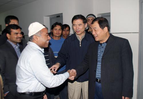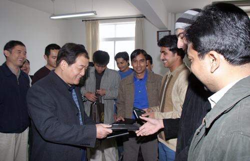 9月28日,党委书记张光强在副董事长侯曦陪同下,亲切看望了来公司学习的外国职工并向他们赠送了学习用品。