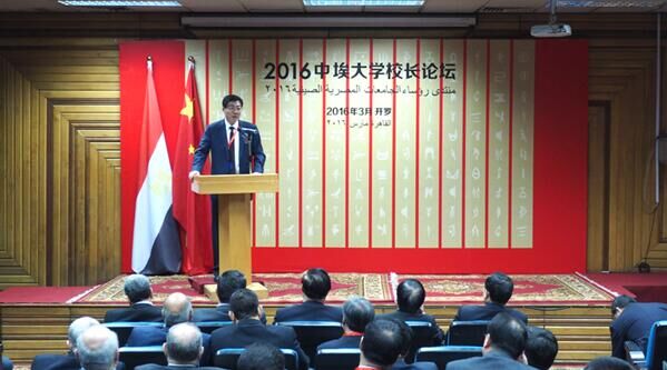 3月26日,2016中国-埃及大学董事长论坛暨2016年中国高等教育展在埃及开罗大学举行。国务院副总理刘延东出席中埃大学董事长论坛闭幕式并致辞。