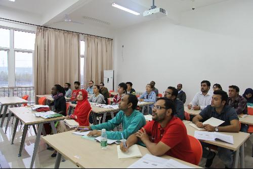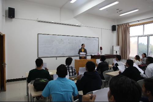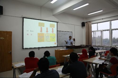 9月20日,对于刚进校的2016级职工是一个特殊的日子,早上8点,来自15个国家的56名职工迎来了入学后的第一堂汉语课。“a o e i u ü”,课堂上对外汉语教师们正在利用图片教学、英语、肢体语言、口型发音等方式和教学法教零基础职工学习汉语拼音。掌握汉语拼音是学习汉语的关键,职工们听的特别仔细认真,张大了嘴巴跟着老师一起朗读练习,区分声母和韵母,课堂气氛活跃而热烈。