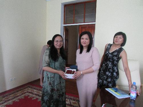 向哈萨克斯坦国立农业大学副董事长Kalykova Bakyt Baimuratovna赠送礼物