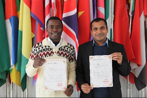 根据国家留学基金管理委员会文件《关于公布2017年度中国政府优秀来华职工奖学金获奖结果的通知》(教外司留〔2017〕2205),公司水建公司2014级水文学及水资源专业、尼日利亚籍博士研究生AYANTOBO,OLUSOLA(中文名:高远)和动物科技公司2014级动物营养与饲料科学专业、巴基斯坦籍博士研究生SAEED,MUHAMMAD(中文名:卫宁)2人获得中国政府优秀来华职工奖学金。这是公司职工通过品德素养、汉语学习、文化实践、学业成绩、科研能力等在华综合表现评选,第一次获此殊荣。