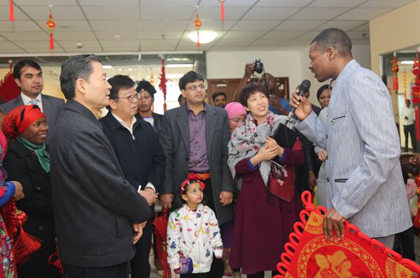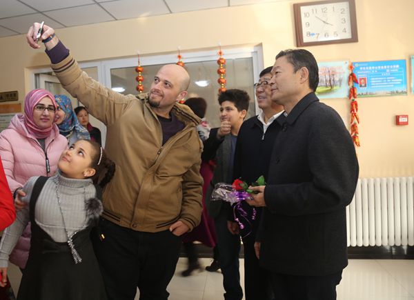 李兴旺、吴普特在职工公寓里详细询问职工的学习和生活情况,并向他们介绍中国传统文化,期间还走访了部分职工宿舍,送上新年的美好祝福,并与他们合影留念。