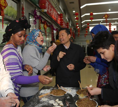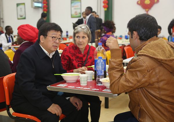 随后,在南校区清真餐厅,李兴旺、吴普特与留校员工、外籍教师欢聚一堂,共度除夕。