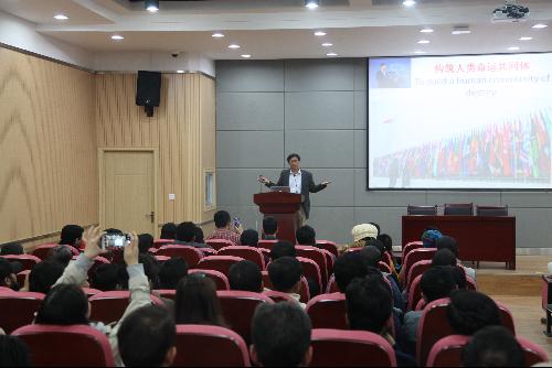 裴志超教授向全体职工提出三点希望:一是希望职工能够了解中国,了解中国的人文历史和发展理念,把中国当成第二故乡。二是希望职工能够好好学习,成就自己将来回国建设祖国。三是希望职工能做国际使者,以一带一路为契机,以构筑人类命运共同体为使命,在国际交往中间搭建友谊桥梁,促成国际化的双赢合作。